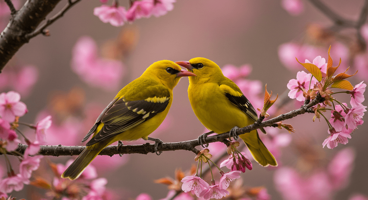 나풀나풀 날아드는 꾀꼬리여雌雄相依 (자웅상의)