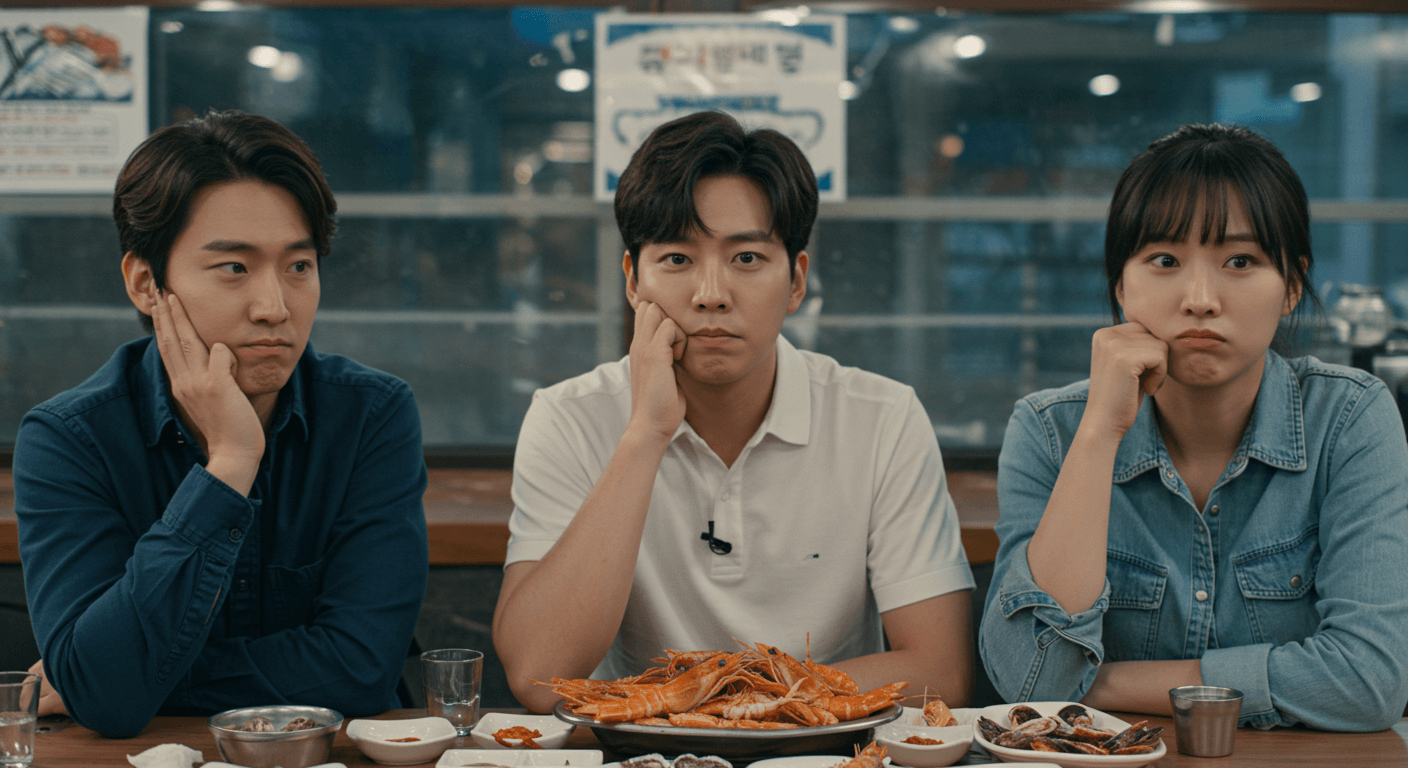 고추장을 두고 갈등이 생긴 식당 속 세 사람의 어색한 표정