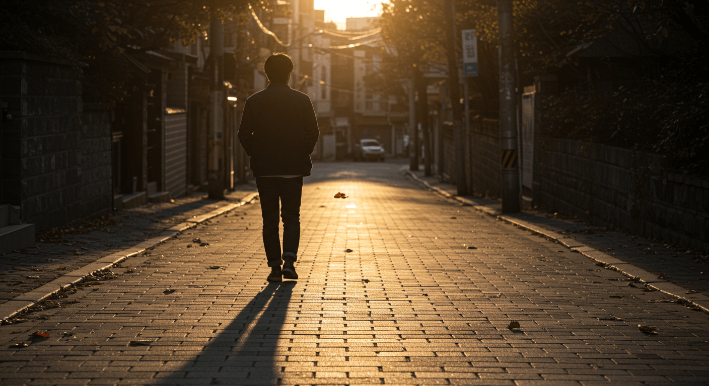 조용한 길을 혼자 걷는 뒷모습
